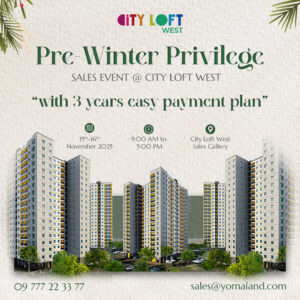 Whether you are looking for your first home, a family home upgrade or an investment property, our property executives will be able to provide a free consultation that meets your needs and budget. Yoma Land’s inventory holds a wide range of properties with various price points and locations that guaranteed a good return on your investment. So, why wait?